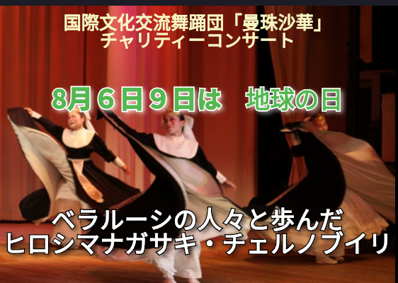 長崎の日に、広島の日を追悼するベラルーシの方がの映像と、1999年にはじめて国際文化交流劇団「曼珠沙華」がベラルーシを訪問したときのお別れの映像です。