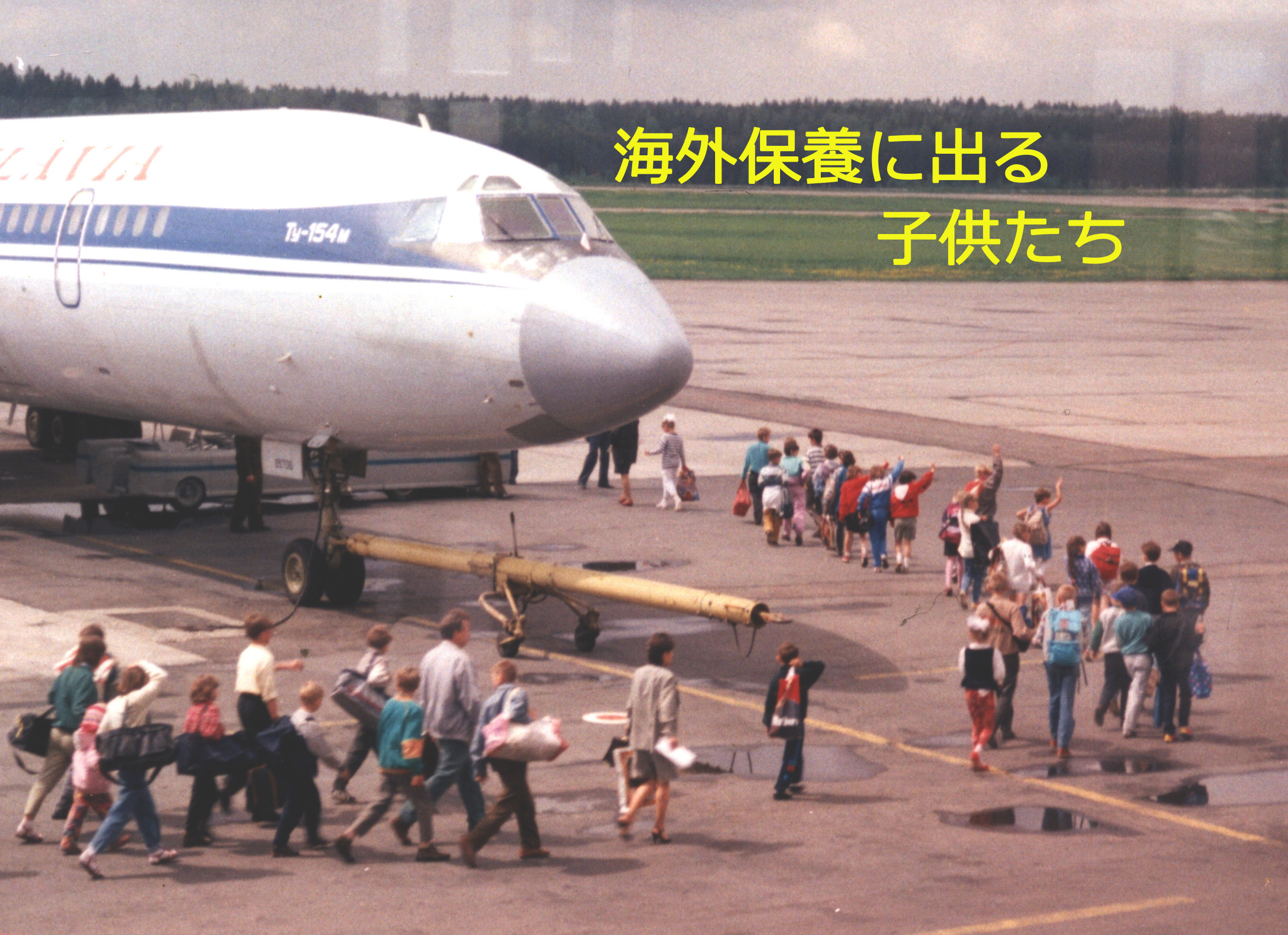 ちょうど、里親訪問でベラルーシに行き、空港から帰るときに、窓から、子どもたちが保養にでるシーンに出くわしました。