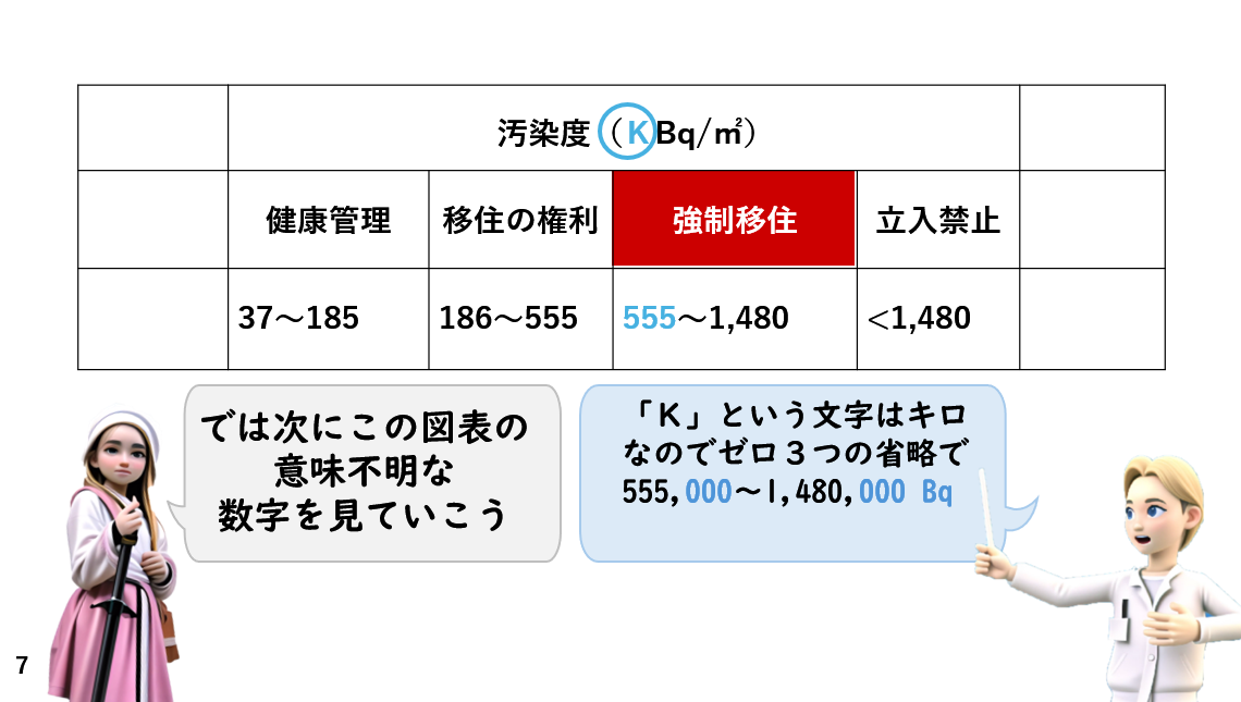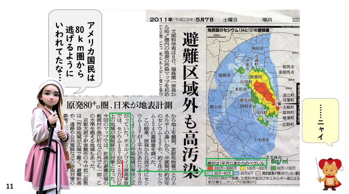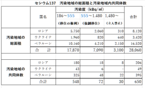 しかし、「ん?」よくよくみると、チェルノブイリのは、「KBq/㎡」なんです。