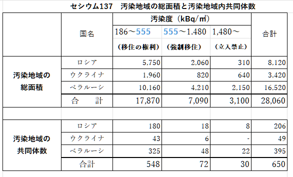 さて、チェルノブイリの強制移住、555,000 Bq/㎡をもう少し考えてみたいと思います。