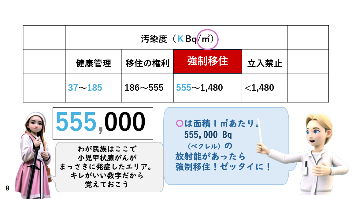チェルノブイリの強制移住 555KBq/㎡ をさがせ