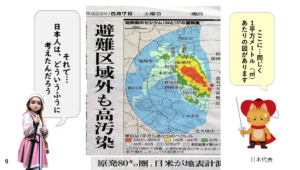 つまり、昼間は外でこれぐらい被ばくしても、夜は家の中で線量がさがるから、それは1ミリではないという三河屋のために代官が考えた恥理論が出てくるわけです。