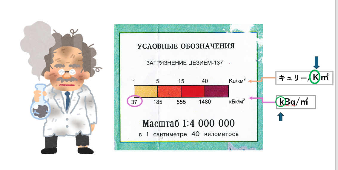 私たちが救援に入った時は、汚染地域の人は、「うちは〇キュリーで」と説明がはいるのですが、私たちが持ってるガイガーカウンターでこのぐらいなのね、として理解していました。