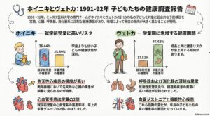 今回のデータであきらかになってるのは、ホイニキとヴェトカにすむ子どもたちの症状の違い…ということです。