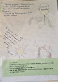 このアゴラ(とよぶらしいです)の木を印刷した紙に、日本の私たちに向けて子どもたちが書いてくれていたのです。